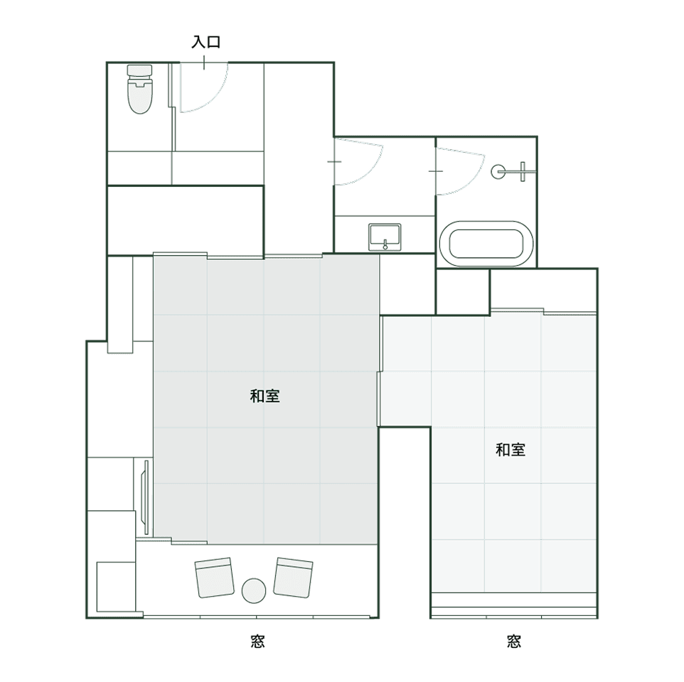 | 温泉内風呂付スタンダード 二間の和室 | 和室 | 7名 | 10畳+7畳 |