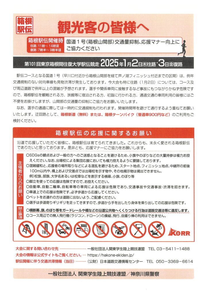 2025年1月2日(木)・3日(金)「第101回東京箱根間往復大学駅伝競走(箱根駅伝)」が